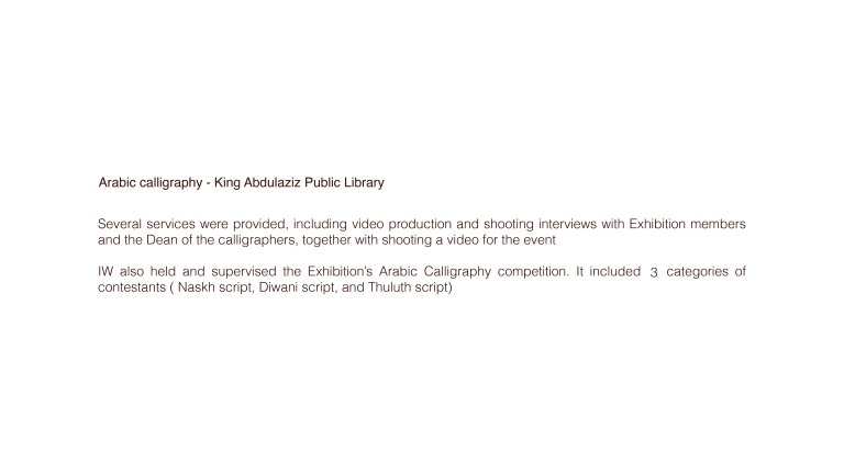 Several services were provided, including video production and shooting interviews with Exhibition members and the Dean of the calligraphers, together with shooting a video for the event.